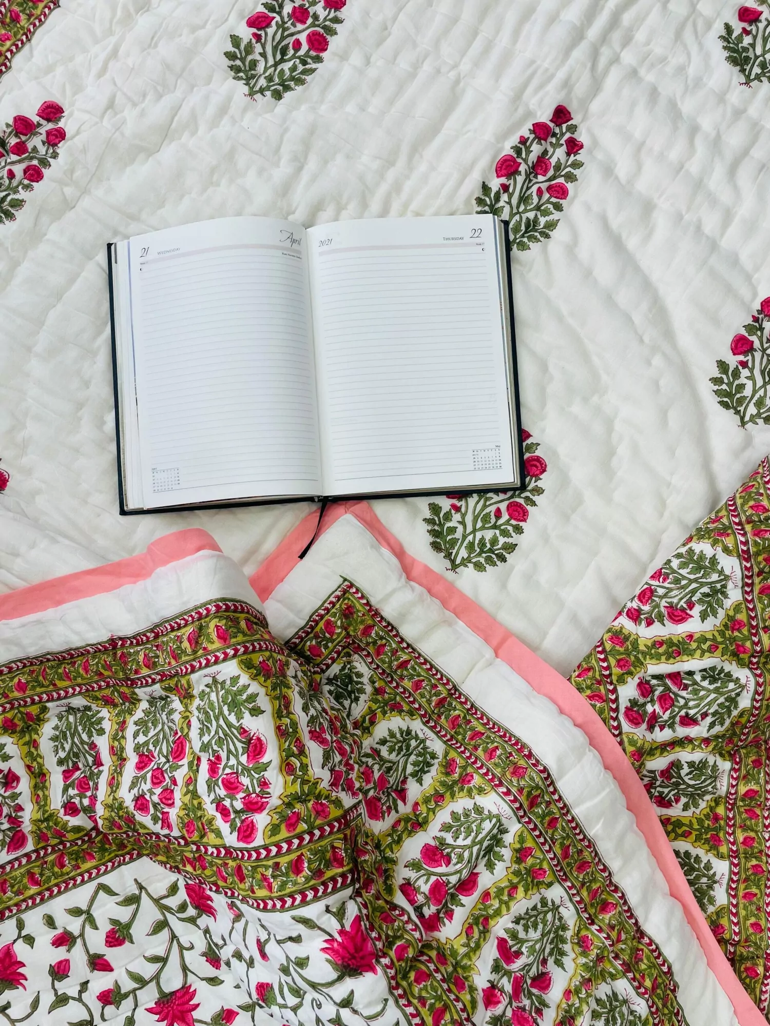 Indulge in the exquisite beauty and luxurious comfort of our Chakri Jaipuri Handblock Printed Reversible Jaipuri Quilt. At Jaipur Dharohar, we celebrate the rich heritage of Jaipur’s handblock printing tradition, and our collection of quilts is a testament to the skilled craftsmanship of our artisans. Immerse yourself in the captivating charm and cozy warmth of our Chakri Jaipuri Handblock Printed Reversible Jaipuri Quilt, and elevate your sleep experience to new heights.