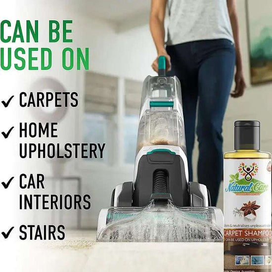 Beleben Sie Ihr Zuhause und Ihr Auto mit dem Natural Care Teppich- und Polsterreiniger-Konzentrat. Diese kraftvolle und dennoch sichere Flüssigformel entfernt hartnäckigen Schmutz, Flecken und Verfärbungen von Teppichen, Vorlegern, Sofas, Couches, Leder und Stoffpolstern. Hergestellt mit pflanzlichen Tensiden und ungiftigen, biologisch abbaubaren Inhaltsstoffen dringt dieser Reiniger tief in die Fasern ein und entfernt hartnäckige Verschmutzungen, ohne empfindliche Textilien oder Oberflächen zu beschädigen. Ideal für alltägliche Verschmutzungen, Tierflecken oder jahrelange Ablagerungen. Dieses Produkt liefert professionelle Reinigungsergebnisse und ist gleichzeitig sicher für Kinder, Haustiere und empfindliche Haut.