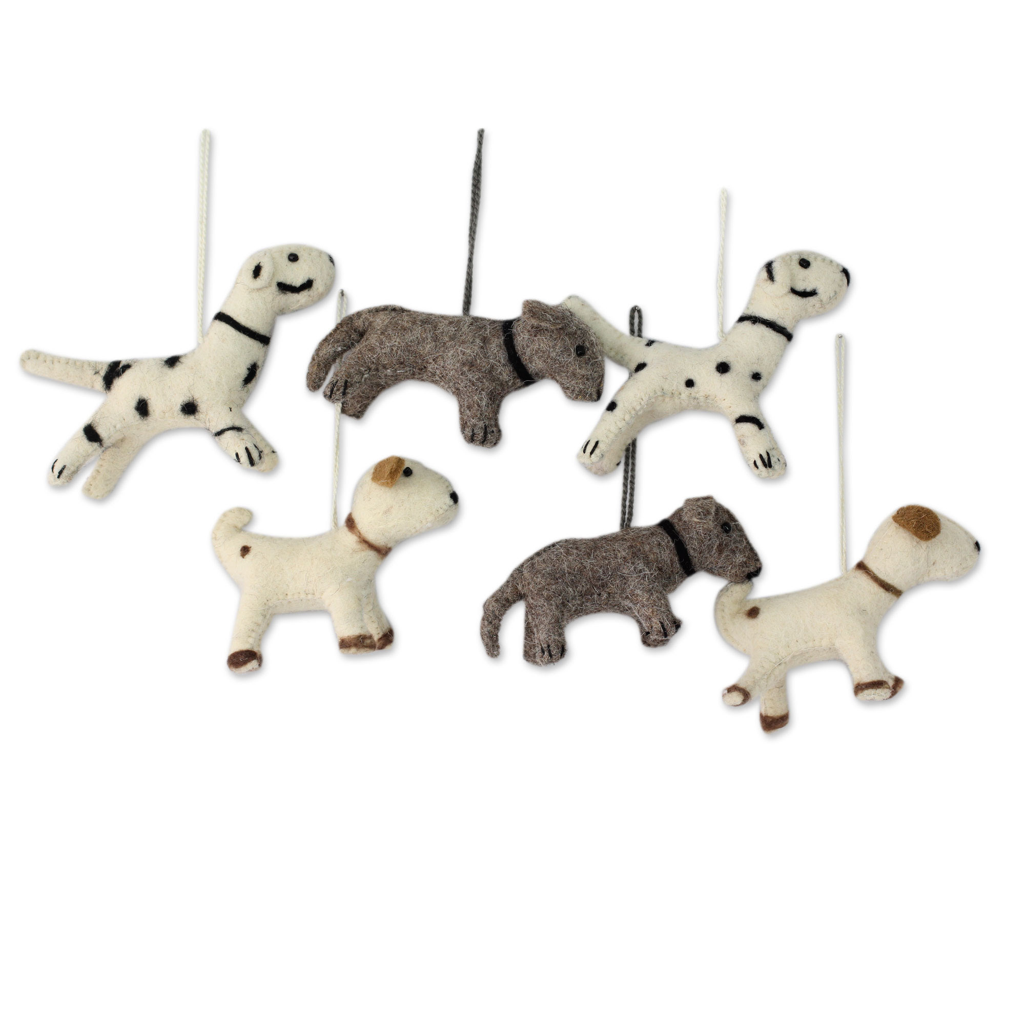 Weihnachtshunde-Ornamente aus Wollfilz (6er-Set) – „Barking Holiday“