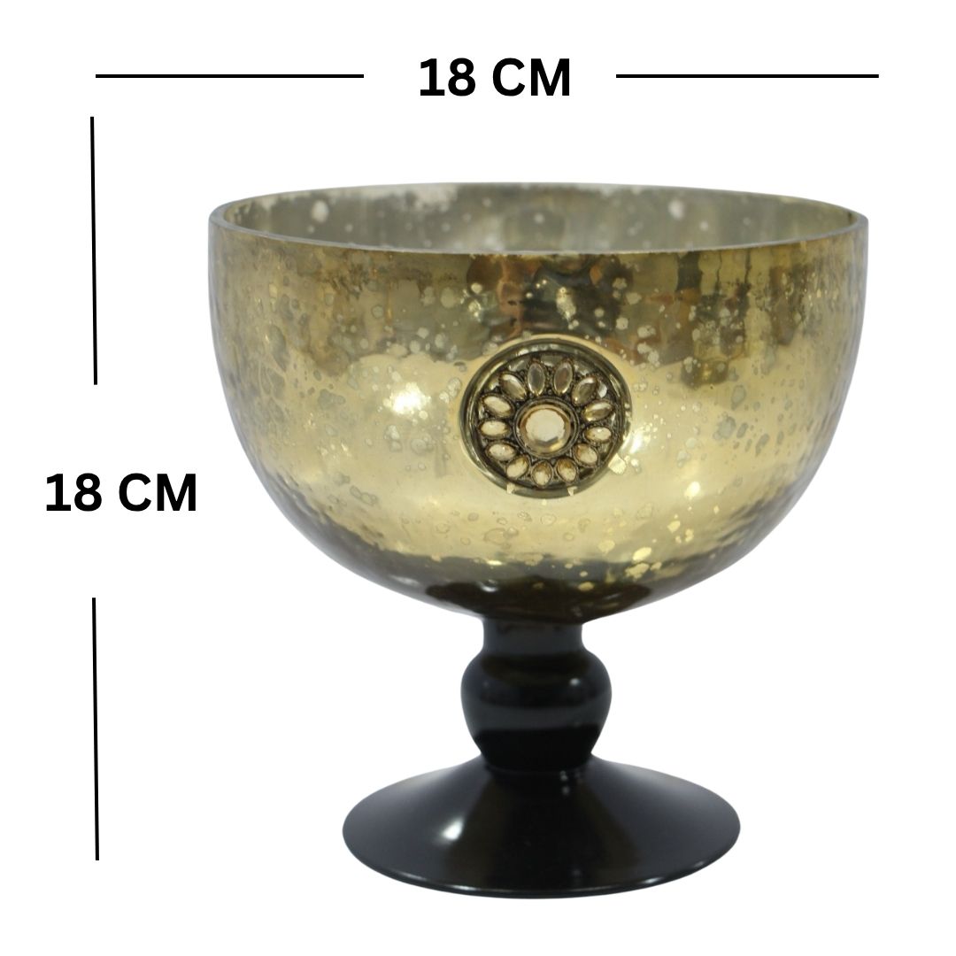 Elevate your home ambiance with the Diamond Pattern Glass Bowl Candle Holder from PARAMOUNT TRADING CORPORATION. This exquisite candle holder features a captivating diamond pattern and a luxurious black gold finish, adding a sophisticated touch to any room. The distressed finish lends a unique, vintage aesthetic. Crafted from high-quality glass, this round, freestanding candle holder, measuring 7.08 x 7.08 cm, provides easy placement on any surface. Its elegant design and refined finish make it a perfect centerpiece or accent piece for home decor, effortlessly creating a warm and inviting atmosphere for any occasion. Weighing only 0.87 kg, it combines style and convenience.