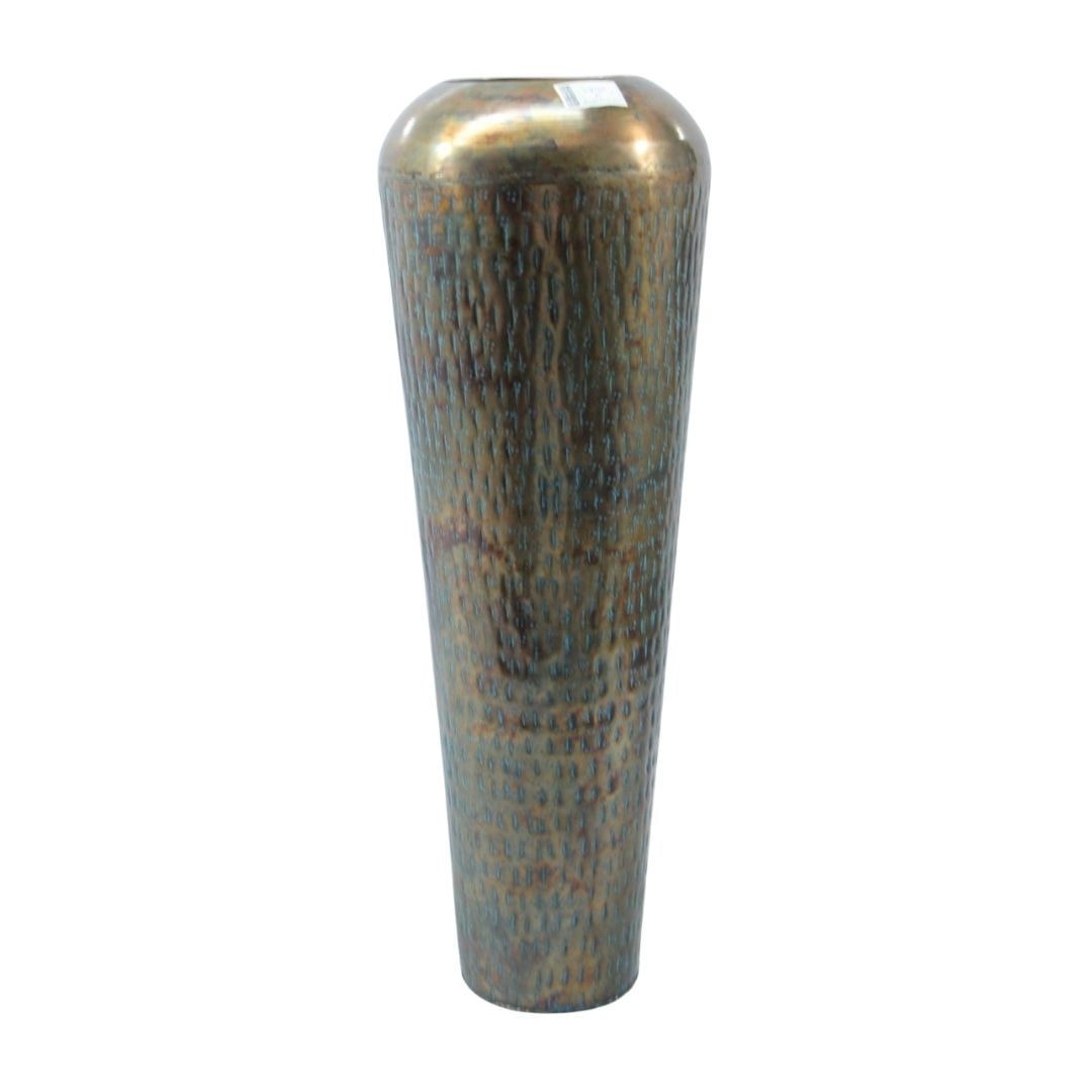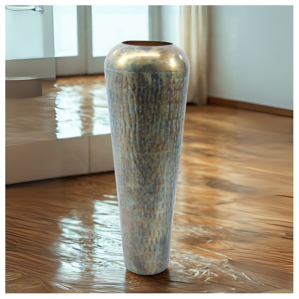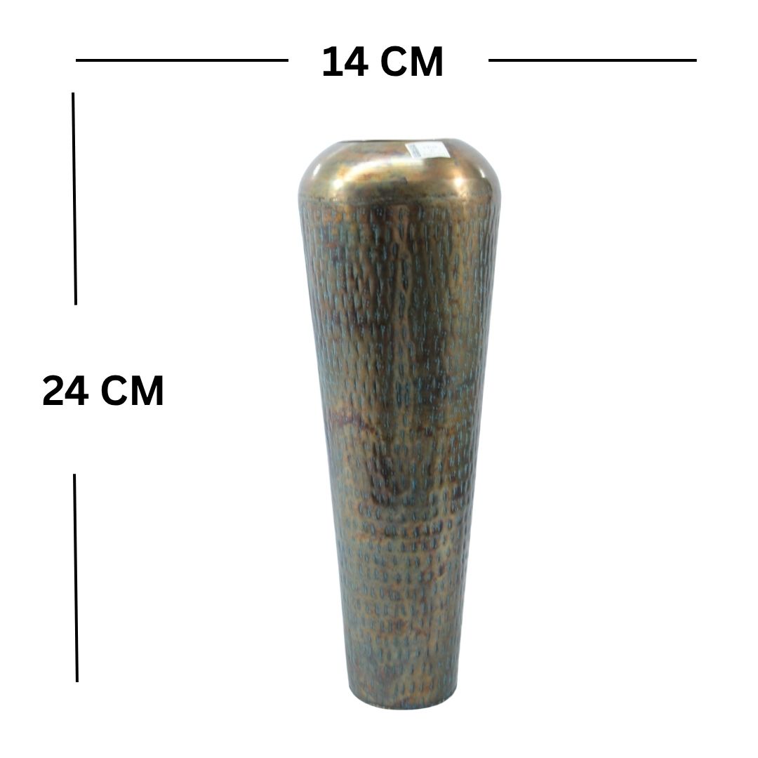 Elevate your living space with our exquisite Distressed Metallic Oval Planter. This vase features a captivating distressed finish, adorned with unique silver and gold speckles, seamlessly blending modern and rustic aesthetics. Crafted from premium metal, its sturdy build ensures lasting elegance and stability. The hand-applied weathered patina adds a vintage allure, making it a versatile centerpiece. Perfect as a standalone statement piece or a chic vessel for showcasing your favorite blooms, this planter enhances any decor.
