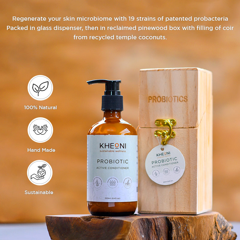 El Acondicionador Probiótico Activo de Kheoni, con aroma a Lavanda y Miel en Armonía, está diseñado para nutrir y restaurar la vitalidad natural de tu cabello. Este acondicionador de 250 ml, elaborado con ingredientes naturales e hidratantes, contiene 19 cepas patentadas de microorganismos beneficiosos. Estos probióticos regeneran el microbioma de la piel, equilibrando y restaurando la salud natural del cuero cabelludo, y contribuyendo positivamente al medio ambiente. Ideal para todo tipo de cabello, este acondicionador orgánico y biodegradable es perfecto para cabello fino, debilitado o dañado, ya que promueve la suavidad, el brillo y el volumen. Enriquecido con probióticos, esta fórmula realza los beneficios de otros ingredientes naturales, nutriendo tu cabello y cuero cabelludo. Úsalo sobre el cabello húmedo para obtener mejores resultados y experimenta el poder transformador de Kheoni.