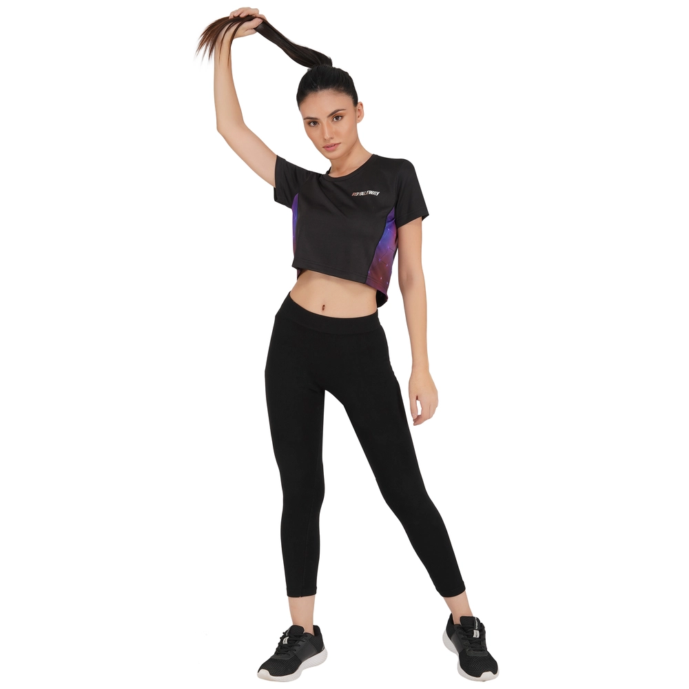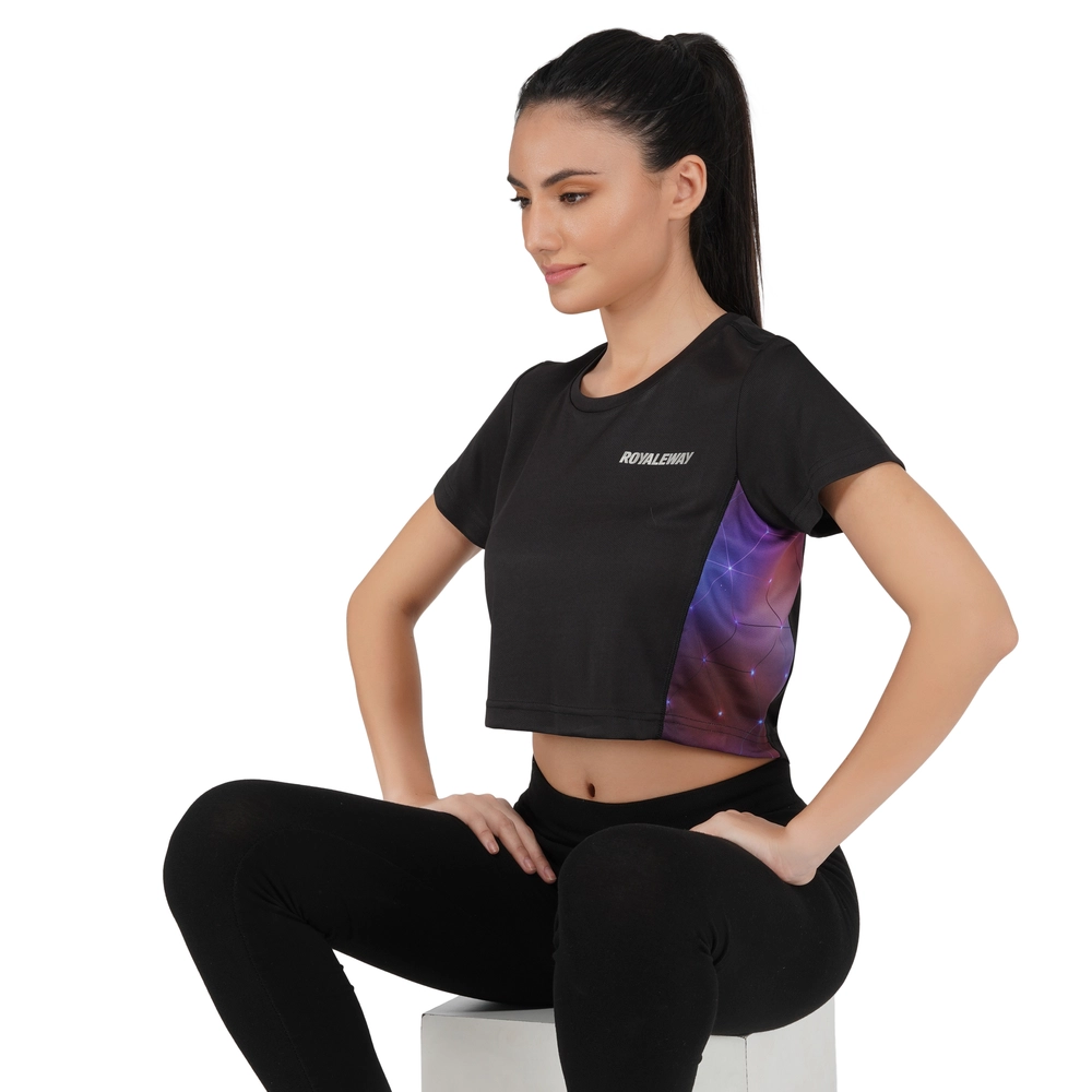 Long Back Crop Top Black And Steel