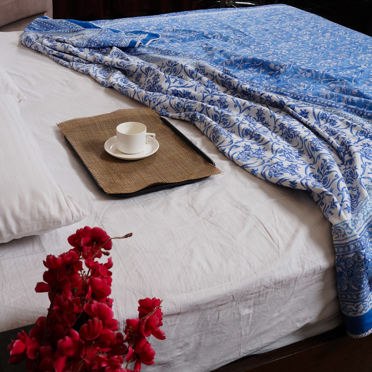 Experience the luxurious comfort and artistic charm of the CRAFTILES Handblock Printed Reversible Dohar. Made from soft, breathable MULMUL - VOILE cotton with a thread count of 250, this dohar features a traditional art pattern achieved through intricate handblock printing techniques. This reversible design adds versatility to your bedding collection. Lightweight and perfect for year-round use, it offers a cozy layer of warmth without feeling heavy. Easy to care for with machine wash instructions, this dohar is a lasting investment in both style and comfort.