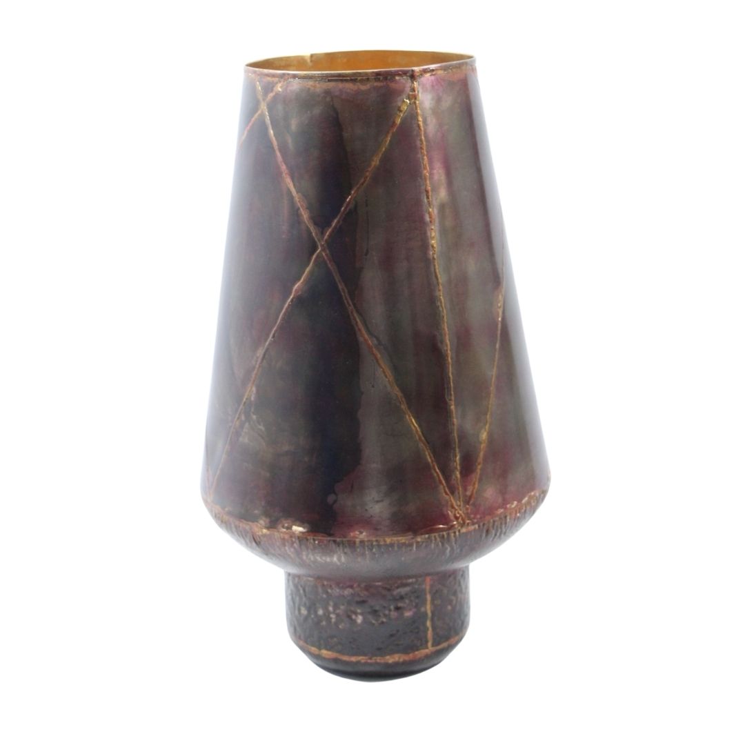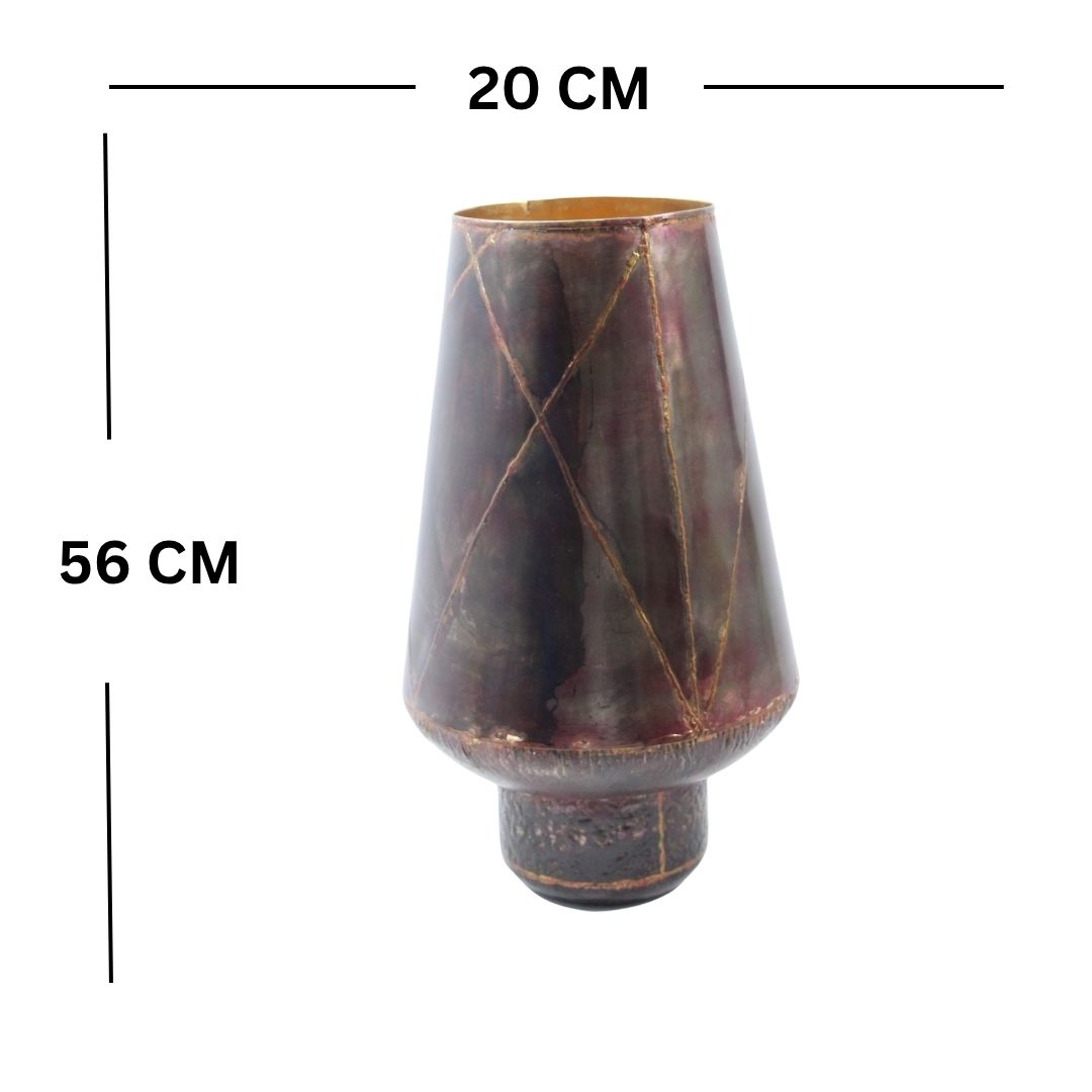 Elevate your home decor with this handcrafted luxury planter. This elegant, oval-shaped metal vase boasts a stunning distressed metallic finish featuring unique speckled patterns in silver and gold tones. Perfect as a standalone decorative piece or a flower vase, it complements both modern and rustic interior styles. Crafted from high-quality metal, its robust build ensures lasting beauty and stability. The hand-finished weathered patina creates an eye-catching vintage appearance. Its generous size offers ample room for floral arrangements or a striking accent piece.