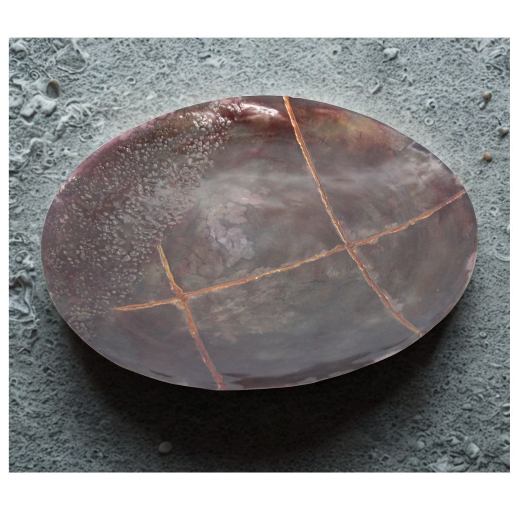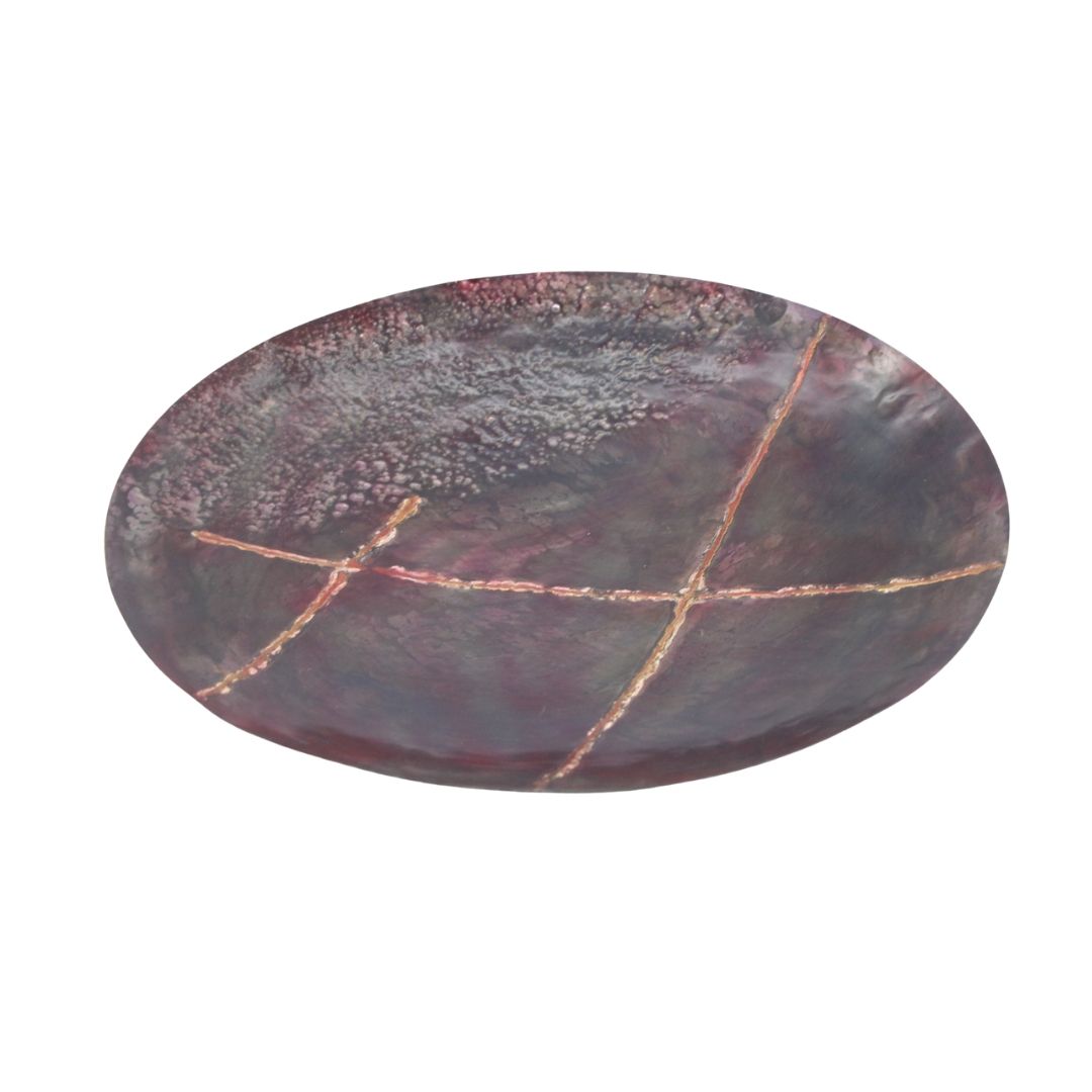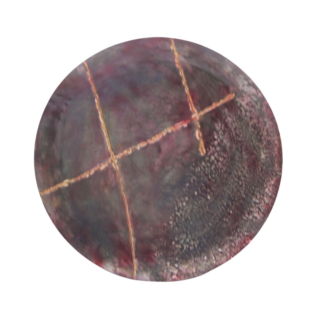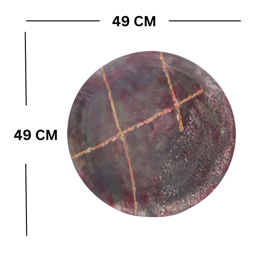 Enhance your home with this handcrafted Kintsugi wall art. This 49cm round piece blends modern style with the ancient Japanese art of Kintsugi, where gold lines emphasize imperfections. It has a mesmerizing copper-gold iron surface, divided by golden fissures that form a geometric pattern. The textured surface adds depth, while the metallic finish reflects light beautifully. Ideal for modern interiors, it makes a statement in living rooms, bedrooms, or offices. Each piece is unique, making it a distinctive decor addition. Durable iron ensures lasting appeal.