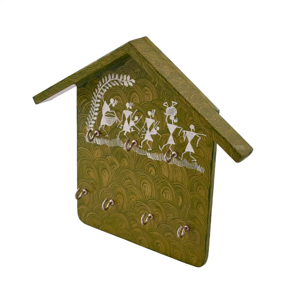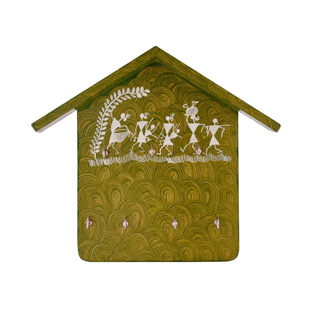 This handcrafted key holder is made of m.d.f wood. White acrylic paint is used to do warli artwork on this key holder, touchwood solution is used after the finishing of the product, artwork on it won’t erase easily as touchwood solution is applied on it, It is also an ideal gift for your friends and relatives.