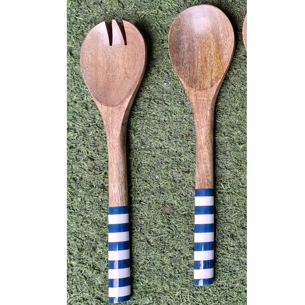 Where Nature Meets Whimsy: Mango Wood Enameled Handle Spoon Server Set (2 pcs)