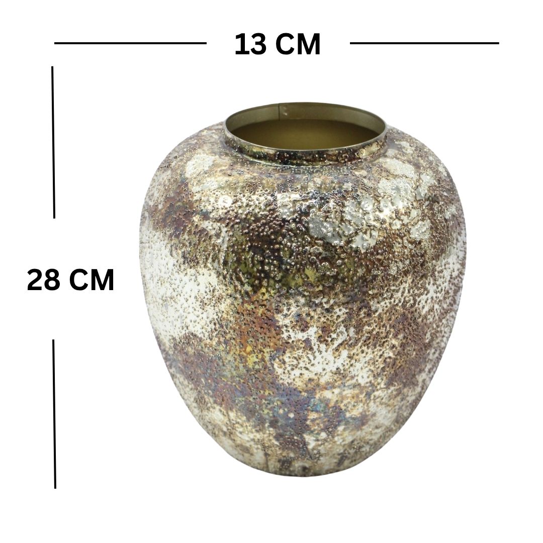 Elevate your home décor with this exquisite vase from PARAMOUNT TRADING CORPORATION PVT LIMITED. Crafted from durable iron and finished in a stunning rustic gold with brass accents, this vase exudes timeless elegance. Its unique design and intricate detailing make it a captivating centerpiece for any room. Measuring 5.12 x 10.24 x 11.02 inches, it's perfectly sized to showcase your favorite flowers or stand alone as a striking art piece. No assembly is required, making it easy to instantly enhance your living space with this beautiful decorative flower vase.