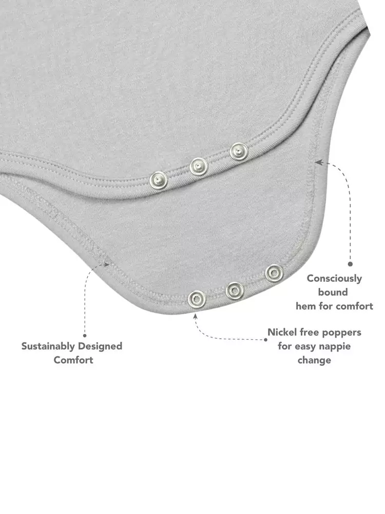 » Vi presenterar den perfekta lilla t-shirten för din lilla, hållbart tillverkad av 100 % GOTS-certifierad ekologisk bomull. Vår t-shirt är tillverkad med största omsorg med tanke på ditt barns säkerhet och komfort. Den är fri från skadliga gifter, kemikalier och bekämpningsmedel vilket gör den hypoallergen och idealisk för ditt barns ömtåliga hud. » Tekniska specifikationer: Tillverkad med miljövänliga färgämnen och en antimikrobiell finish, lägger den till ett extra lager av skydd för ditt barns känsliga hud för att säkerställa att t-shirten förblir fräsch och hygienisk efter flera tvättar. Bio-wash ger extra mjukhet vilket gör den till ett utmärkt val för känslig hud. » Mångsidig och slitstark: Våra t-shirts kan bäras som ett underlager eller som en topp, vilket ger den mångsidighet och en elegant funktion. Den är byggd för att hålla genom alla ditt barns äventyr eftersom ekologisk bomull är mycket slitstark som tål flera tvättar och slitage, vilket ger den en lång livslängd. » Lättskött: T-shirtarna kan tvättas i maskin och torkas vilket gör dem till ett bekvämt och enkelt val för upptagna föräldrar. Den är skrynkelfri och lätt att stryka. Antimikrobiell finish och biotvätt. » Etiskt och miljövänligt: Vi är stolta över att kunna säga att vårt tyg är etiskt framställt och producerat av en fabrik som är GOTS-certifierad. Ekologiska jordbruksmetoder främjar biologisk mångfald och sparar vatten och minskar bomullsproduktionens miljöpåverkan. » När du väljer vår bodysuit, fattar du ett medvetet beslut att skydda och bevara planeten för våra framtida generationer.