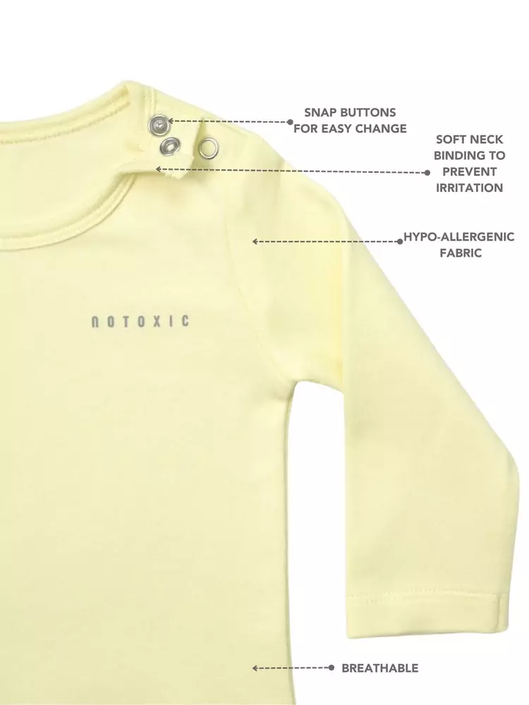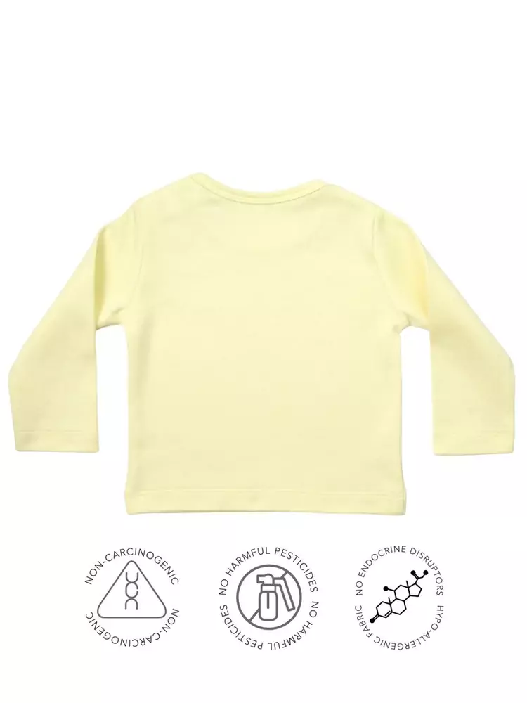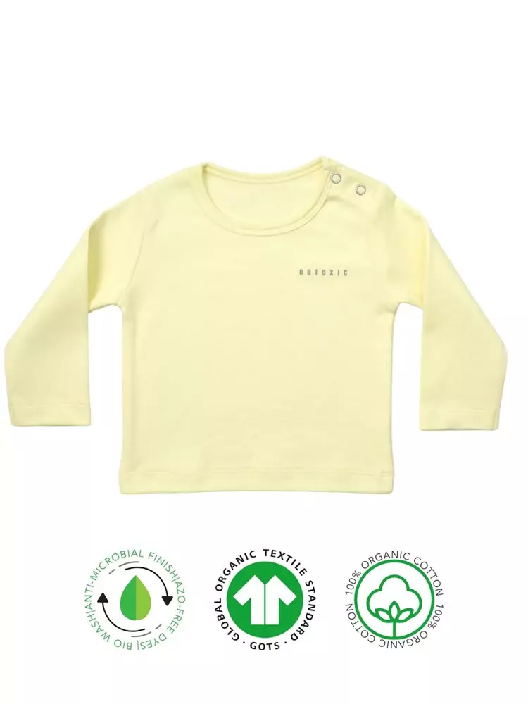 » Vi presenterar den perfekta lilla t-shirten för din lilla, hållbart tillverkad av 100 % GOTS-certifierad ekologisk bomull. Vår t-shirt är tillverkad med största omsorg med tanke på ditt barns säkerhet och komfort. Den är fri från skadliga gifter, kemikalier och bekämpningsmedel vilket gör den hypoallergen och idealisk för ditt barns ömtåliga hud. » Tekniska specifikationer: Tillverkad med miljövänliga färgämnen och en antimikrobiell finish, lägger den till ett extra lager av skydd för ditt barns ömtåliga hud vilket säkerställer att t-shirten förblir fräsch och hygienisk efter flera tvättar. Bio-wash ger extra mjukhet vilket gör den till ett utmärkt val för känslig hud. » Mångsidig och slitstark: Våra t-shirts kan bäras som ett underlager eller som en topp, vilket ger den mångsidighet och en elegant funktion. Den är byggd för att hålla genom alla ditt barns äventyr eftersom ekologisk bomull är mycket slitstark som tål flera tvättar och slitage, vilket ger den en lång livslängd. » Lättskött: T-shirtarna kan tvättas i maskin och torkas vilket gör dem till ett bekvämt och enkelt val för upptagna föräldrar. Den är skrynkelfri och lätt att stryka. Antimikrobiell finish och biotvätt. » Etiskt och miljövänligt: Vi är stolta över att kunna säga att vårt tyg är etiskt framställt och producerat av en fabrik som är GOTS-certifierad. Ekologiska jordbruksmetoder främjar biologisk mångfald och sparar vatten och minskar bomullsproduktionens miljöpåverkan. » När du väljer vår bodysuit, fattar du ett medvetet beslut att skydda och bevara planeten för våra framtida generationer.