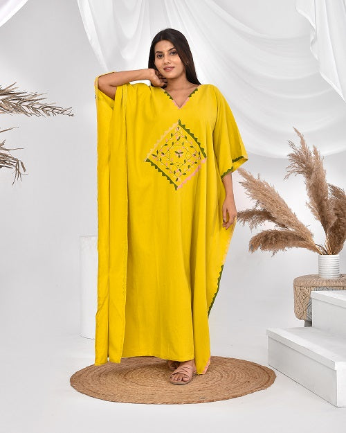 Att känna sig och se vacker ut är varje kvinnas dröm. Och vad kan vara bättre om hon är bortskämd med valet av chica Kaftans som är oemotståndliga? Vad om hon kan vara sig själv och se och känna sig vacker när hon bär något som inte bara är ett plagg utan ett värdefullt konstverk? Hon kommer säkerligen att känna sig på toppen av världen. Här är en fascinerande samling av våra out of the world flytande, lätta, lugnande, siden och mjuka handgjorda Kaftans som är för varje kvinna oavsett hennes form eller storlek. Skärningarna, silhuetterna och stilarna i dessa skapelser är sådana att alla kan bära dem med lätthet och elegans. De är stycken indränkta i konst eftersom de är noggrant tillverkade med handmålning, handbroderi och utsmyckningar. Du kommer garanterat att sola dig i absolut lyx när du glider in i dem och känner dig som en prinsessa, redo att vända huvudena.
