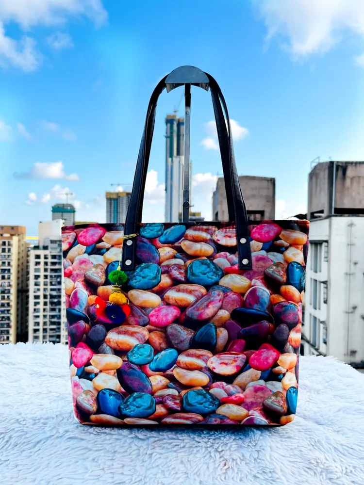 Denna vackra flerfärgade tygväska med ljust tryck har dubbla fack. Den har en invändig fack och bakficka. Tillverkad av miljövänligt material. Bäst för personligt eller kontorsbruk.