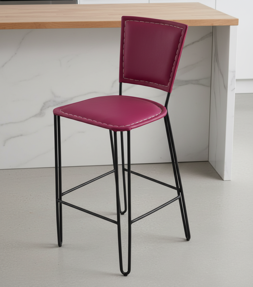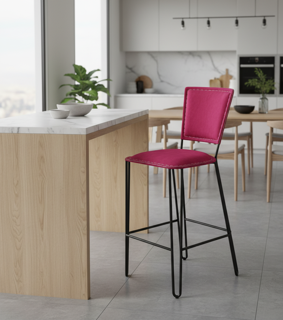 Sturdy in construction this metal bar chair offers you a great comfort with beauty. It comes in a MS black powdercoat finish with a soft and upholstered velvet seat and back rest. Metal Frame with a back rest and velvet seats to provide comfortable seating while the footrest allows for additional support and stability.