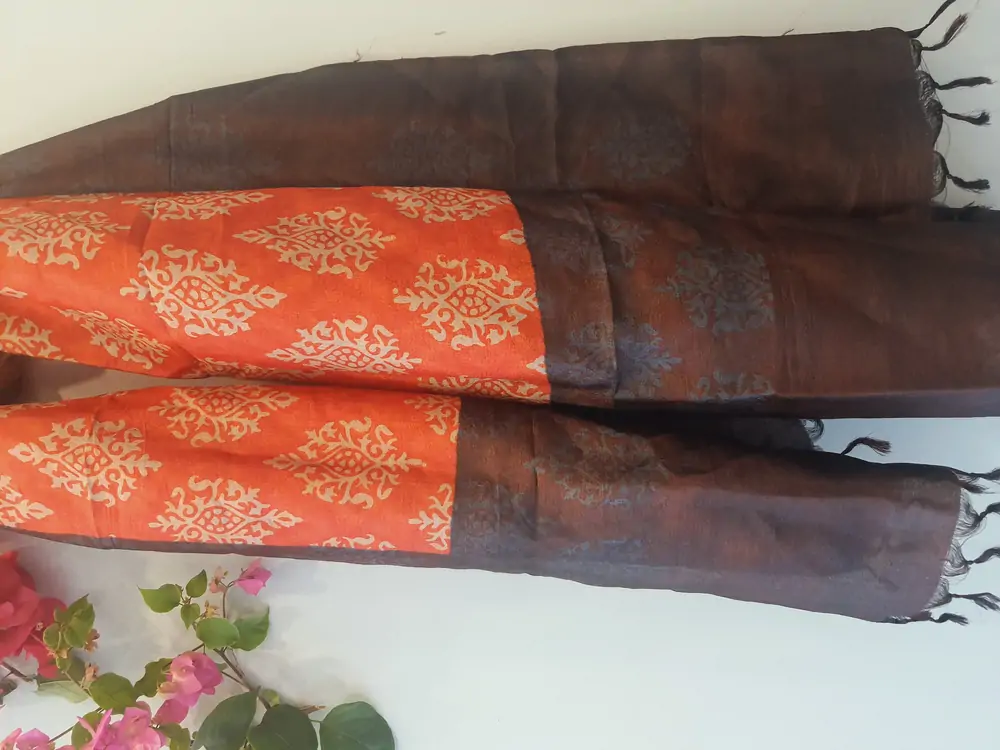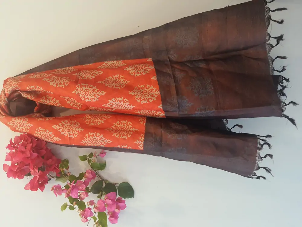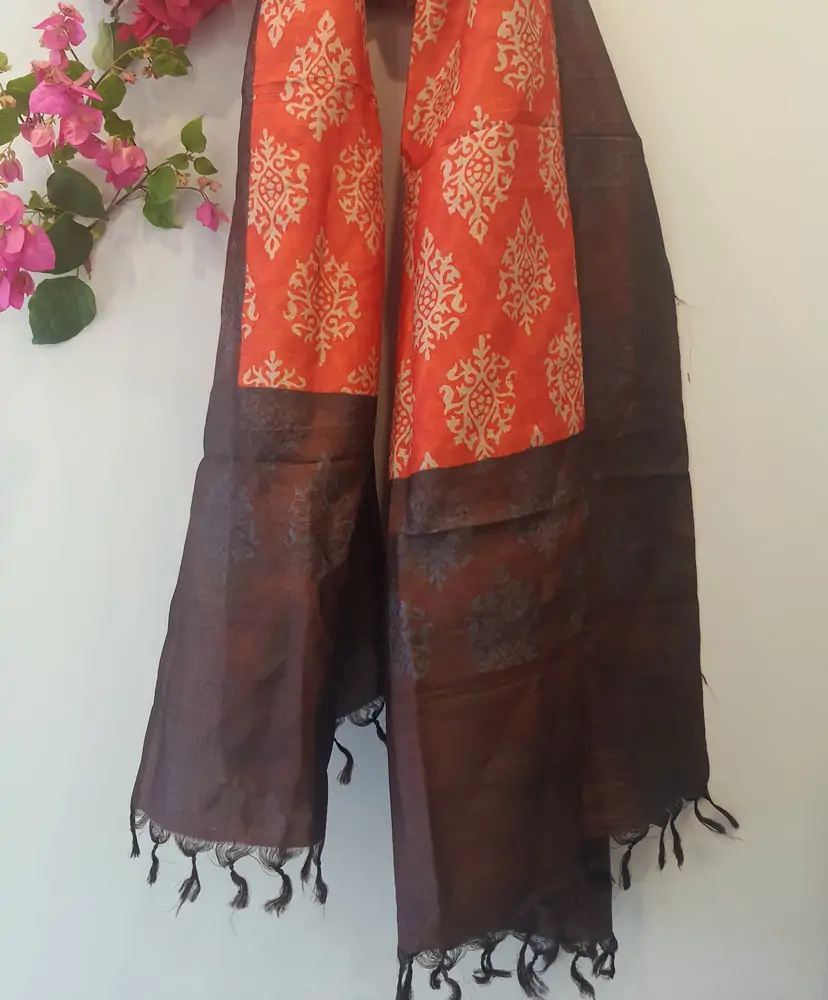 Handwoven Kosa Silk dupatta (can be draped & styled as a stole too). Any variation in the hand block print or the colour is part of its beauty as it’s handmade. Celebrating the Voice of Karigars. Every purchase of Kauseyah encourages the skills and the socio-economic condition of artisans.